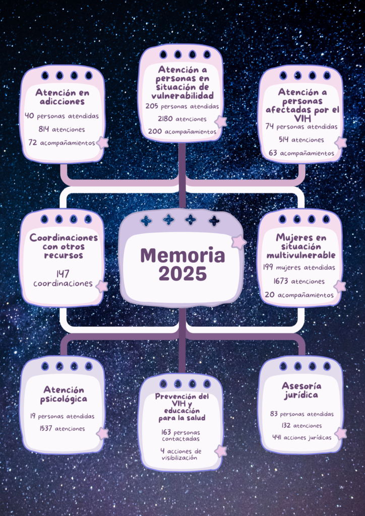 Hacemos trabajo social, atención psicológica y asesoría jurídica en nuestros proyectos de vulnerabilidad social, adicción a drogas, VIH, y prevención y educación para la salud.