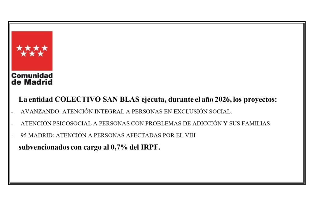Somos un recurso de referencia en el distrito de San Blas-Canillejas, que lleva a cabo una atención directa, gratuita y de apoyo a personas en situación de vulnerabilidad social, desde el año 1990.